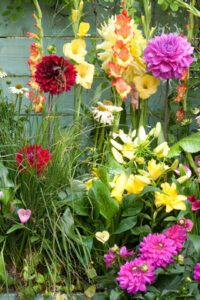 - Dahlior – Från stora dekorativa sorter till sofistikerade pompomdahlior, de är verkligen sommarens stjärnor. Ju varmare det är, desto mer blommar de (till och med in på hösten).