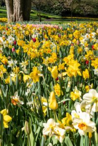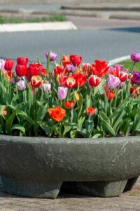 It’s not just the blooms of bulb flowers that are gorgeous; the various shapes and shades of green make their foliage attractive and versatile. Any location is suitable and could include roadsides, parks, roundabouts and even under bushes and trees. Flower boxes or large pots with bulb flowers are real eye-catchers in prominent, highly visible locations.