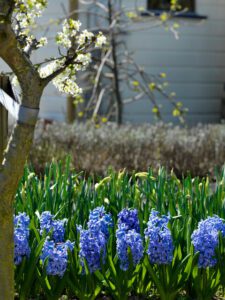 Hyacinter är också ett bra val för denna period. De är vackra och har en underbar doft. Naturligtvis är tulpaner också ett måste. Välj en kombination av sorter med olika blomningstider.