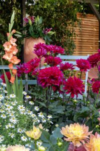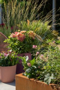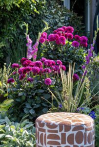 Trenden ” Bold Blooms” handlar om mysiga trädgårdar som utstrålar värme. Tänk varma, starka färger, mjuka strukturer och en blandning av material som kompletterar varandra på ett vackert sätt. I trädgården återspeglas detta i mjuka, runda former, bekväma möbler och kantrabatter fulla av prunkande växter och blommor.
