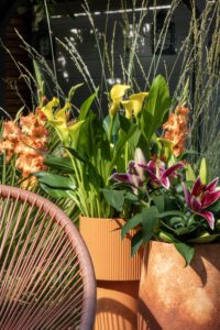 Sommarblommande lökar som dahlior, gladioler, kallor och begonior kan spela en stor roll i denna trend. De glada färgerna ger en känsla av hopp och sätter ett leende på allas läppar. Satsa på prunkande, färgglada kantrabatter med blommor i olika höjder för att skapa en lekfull känsla.